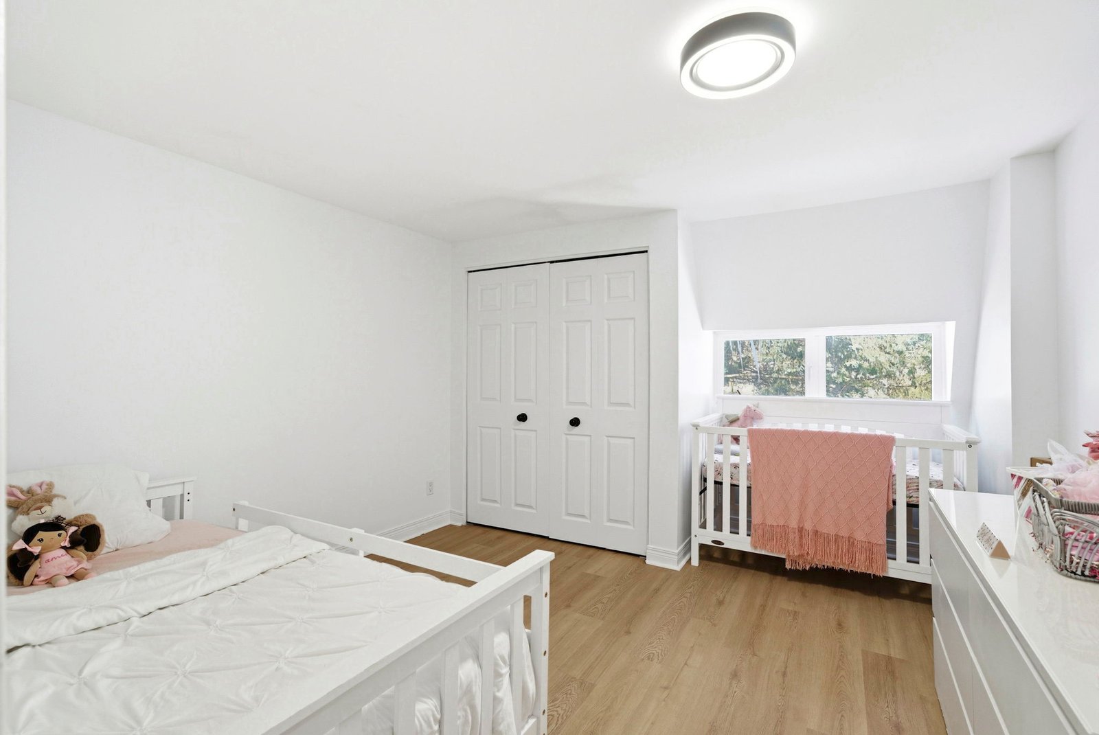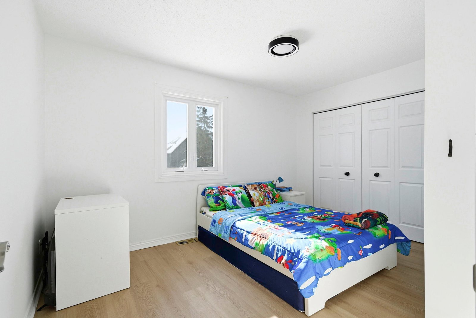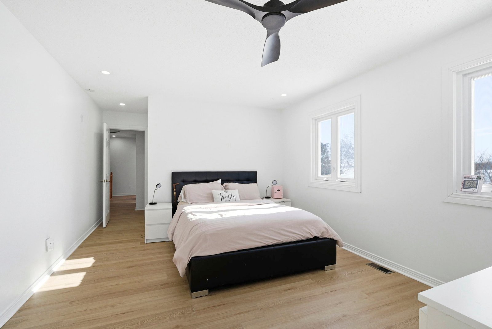 The primary suite is bright and inviting, featuring multiple windows and a walk-in closet. 3 additional bedrooms are well-proportioned and ideal for a growing family, while the fully renovated main bathroom features a freestanding soaker tub, a separate glass shower, and a double vanity.
