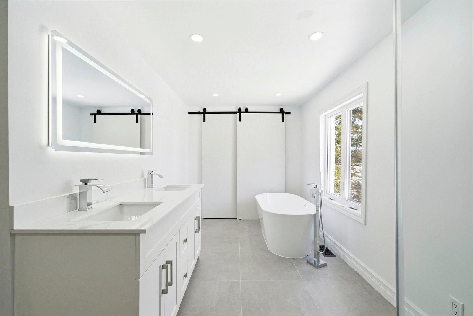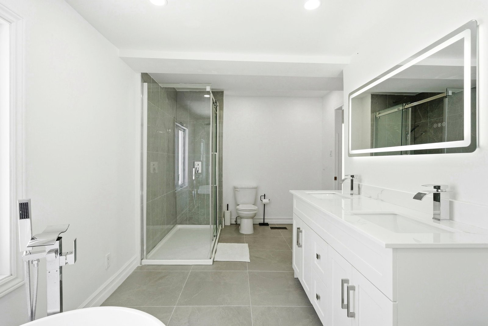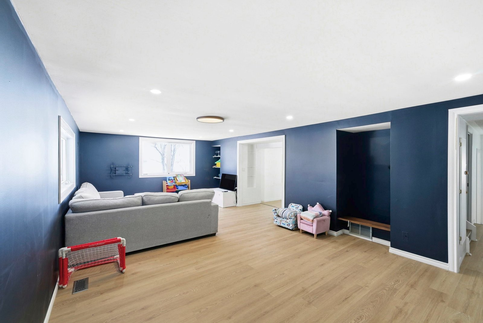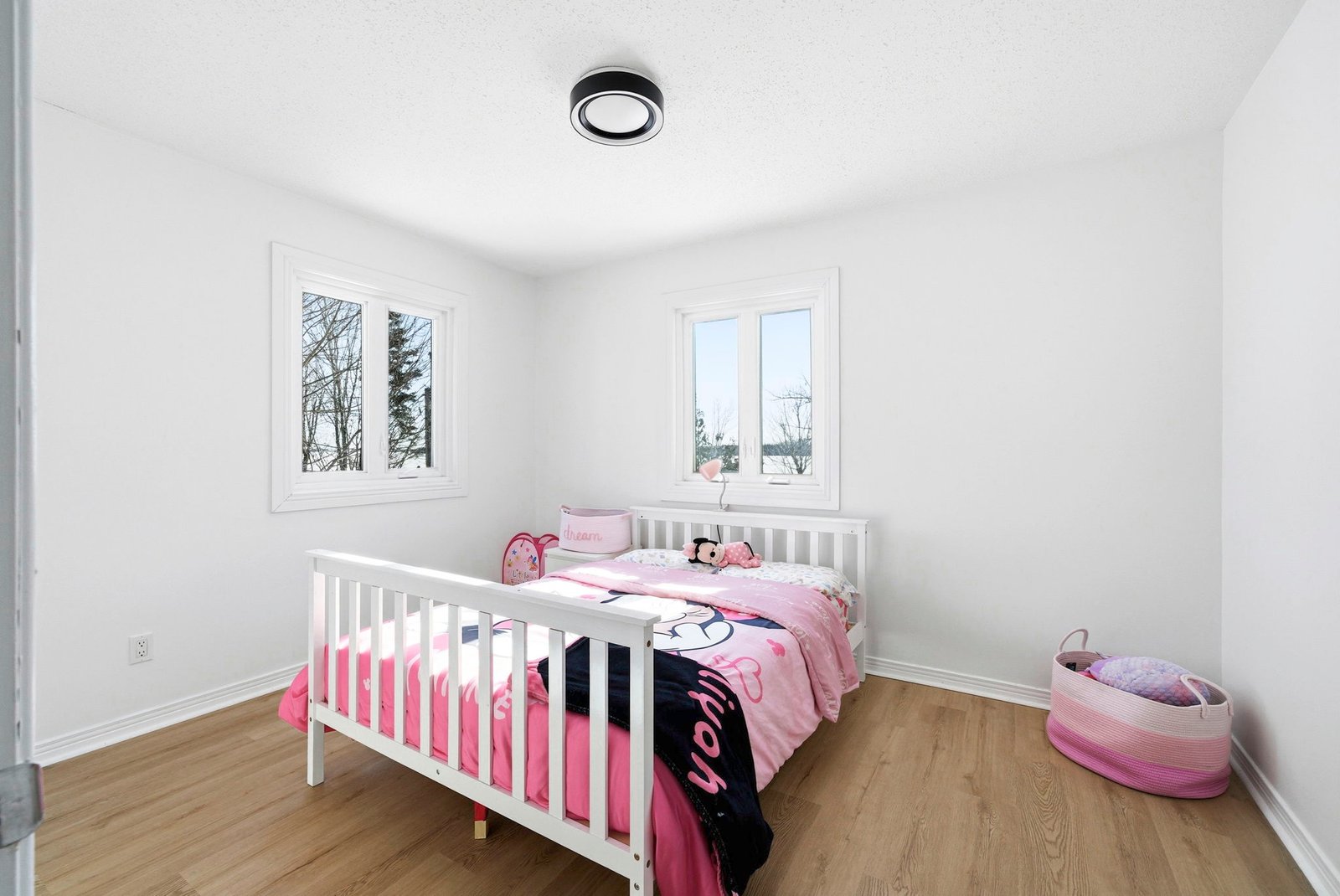 The primary suite is bright and inviting, featuring multiple windows and a walk-in closet. 3 additional bedrooms are well-proportioned and ideal for a growing family, while the fully renovated main bathroom features a freestanding soaker tub, a separate glass shower, and a double vanity.