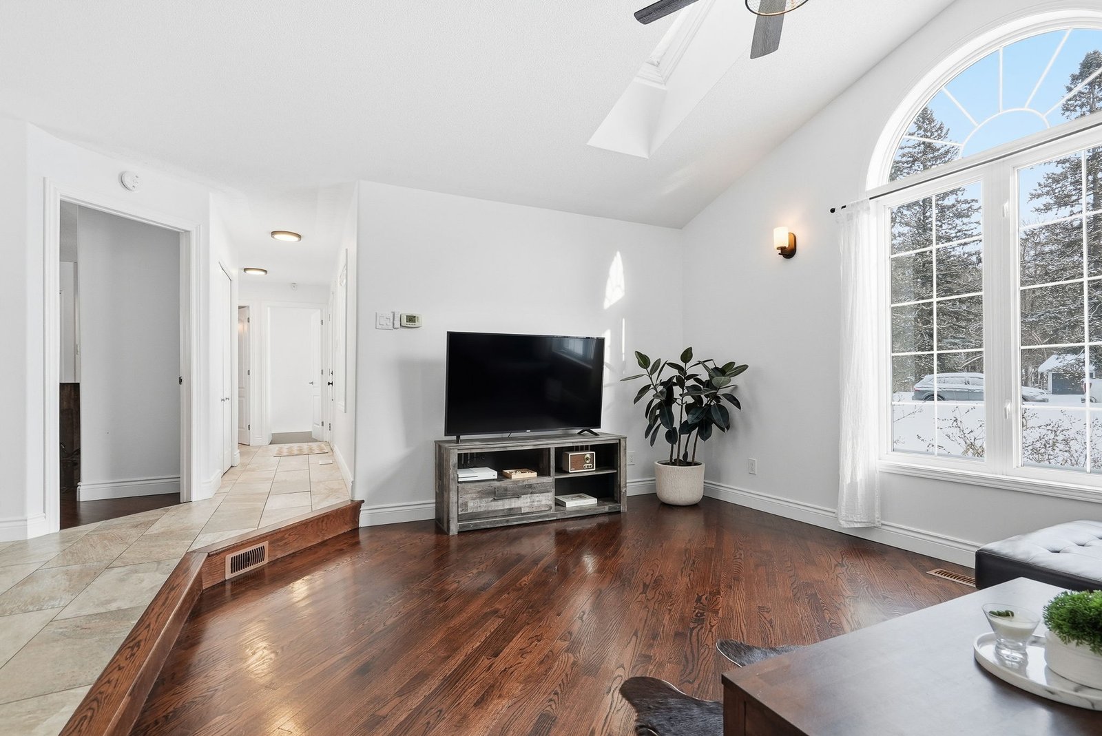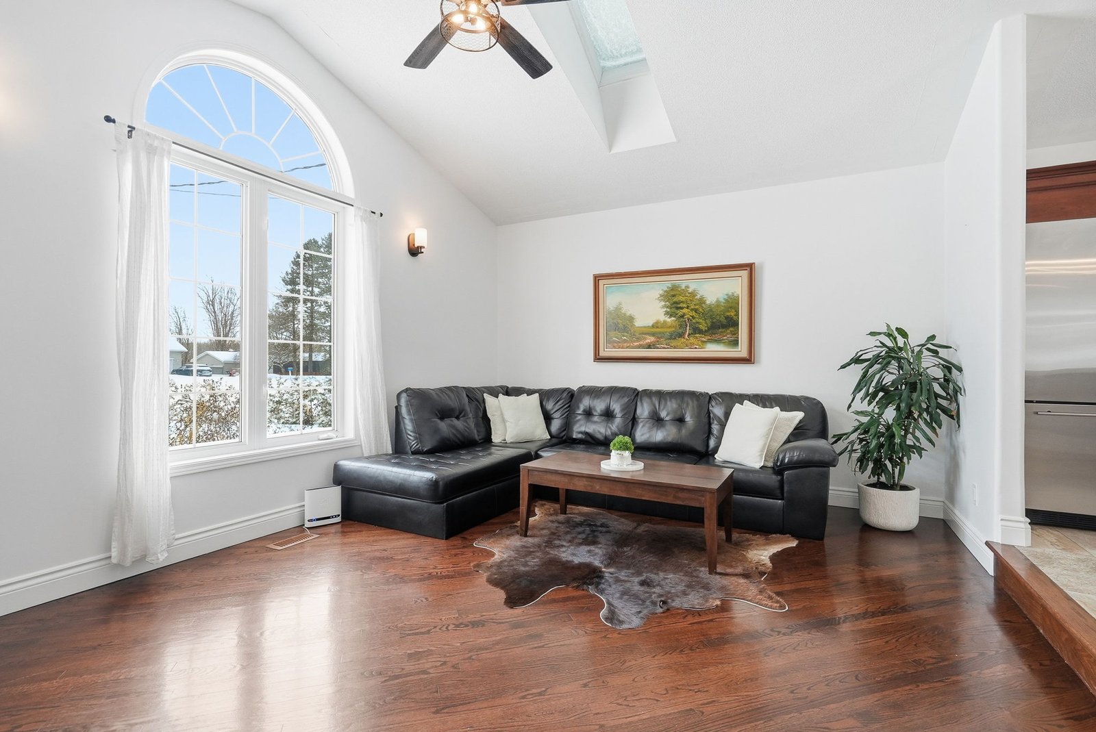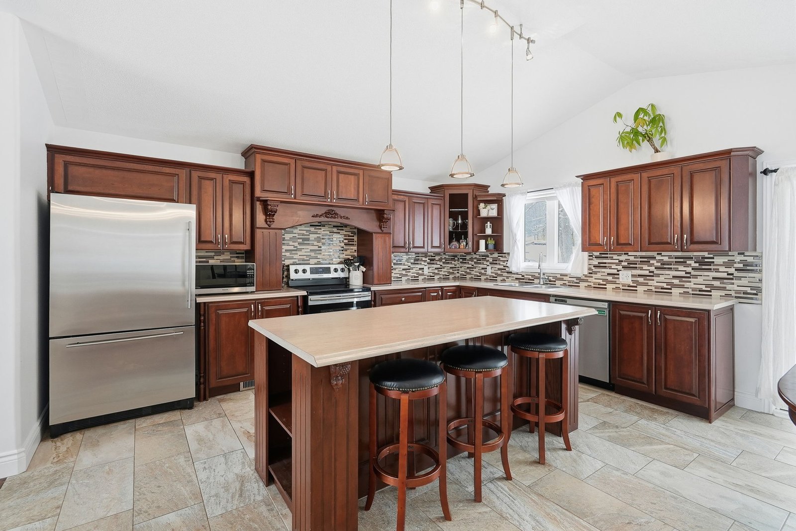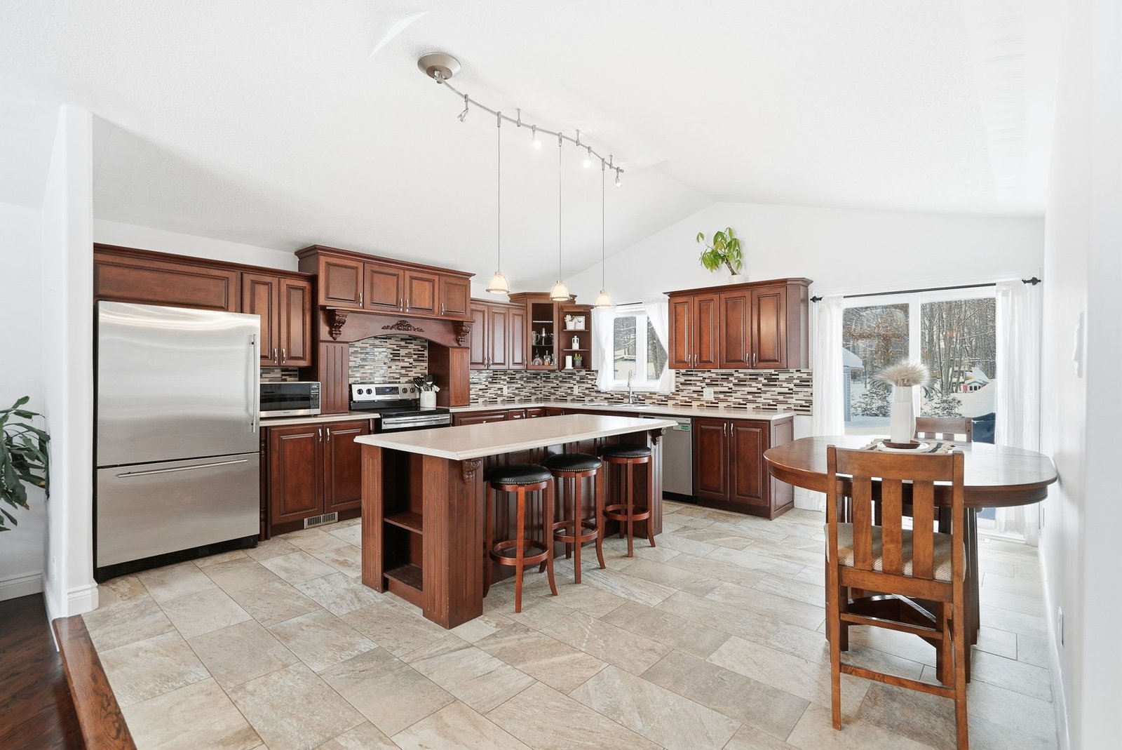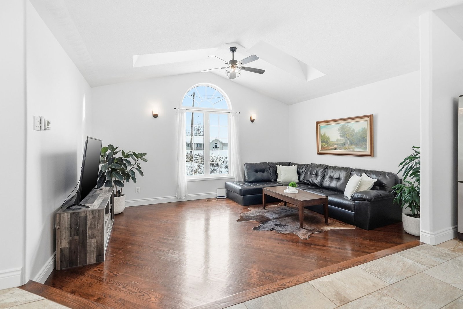 This charming bungalow in Casselman sits on a large, tree-lined lot, offering peaceful small-town living with nearby ATV and snowmobile trails and easy access to Highway 417. A covered front porch leads into a bright tiled entry that creates a welcoming atmosphere and opens into the main living areas with tall cathedral ceilings.