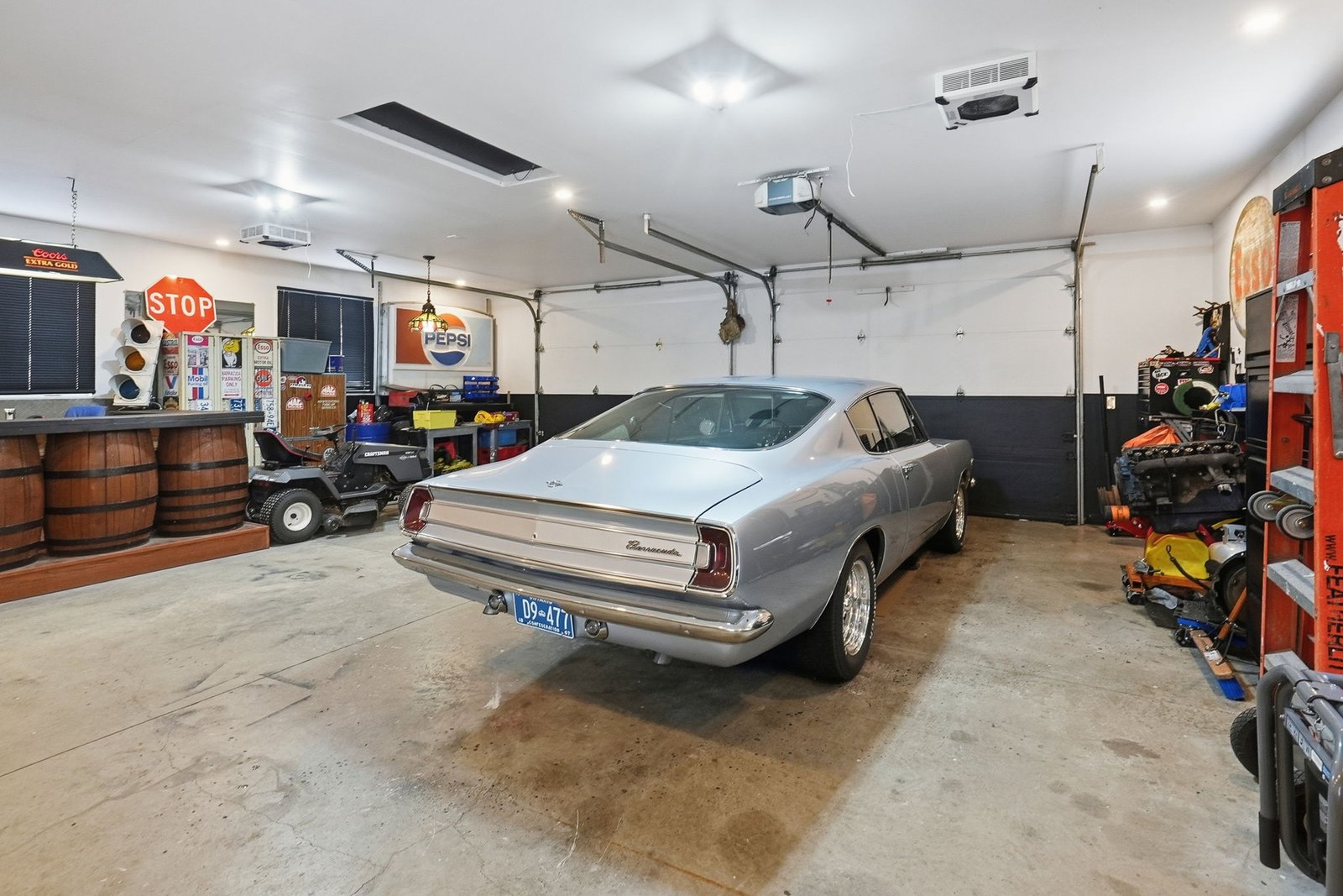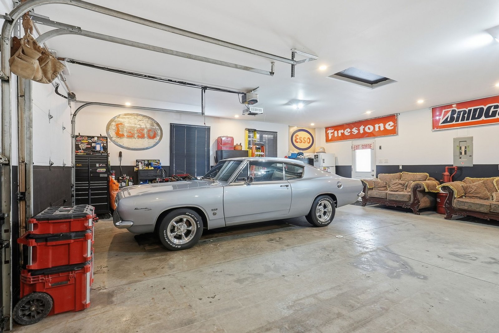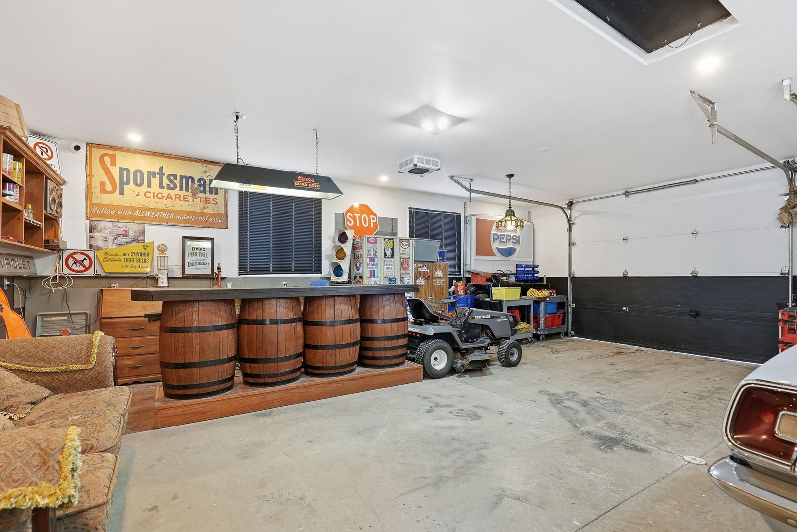 The finished lower level has durable laminate flooring, recessed lighting, and custom built-in shelving and cabinetry, ideal for a media space. 2 additional lower-level bedrooms add valuable living space for guests or would serve well as home offices or hobby spaces. The large detached, 2-car heated garage with a unique barrel bar is ideal for anyone looking for a separate space from the main home – ideal for a workshop or a home gym. Two more outbuildings on the property are ideal for storing seasonal equipment and materials.