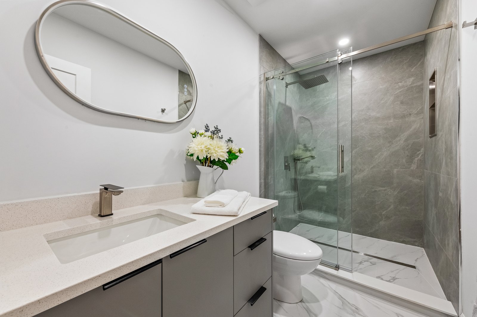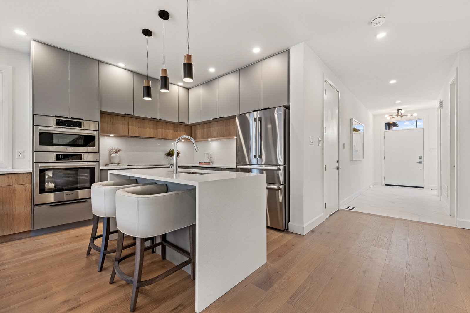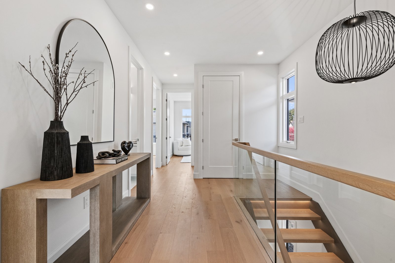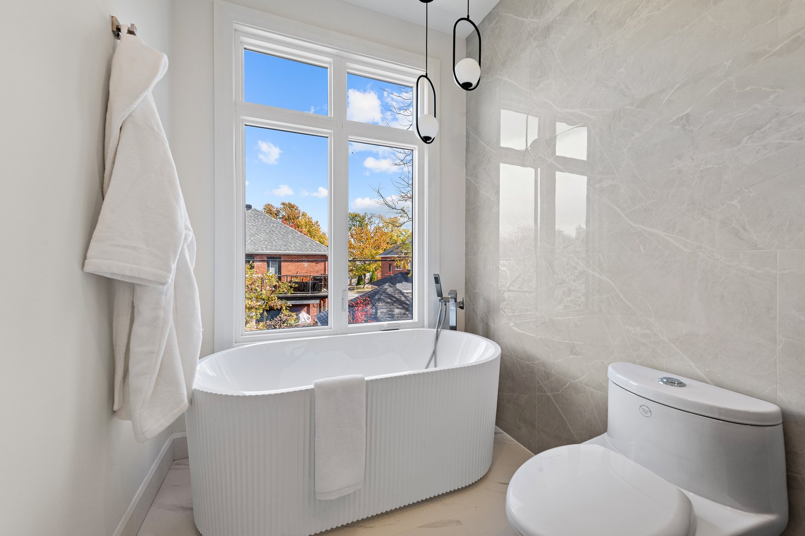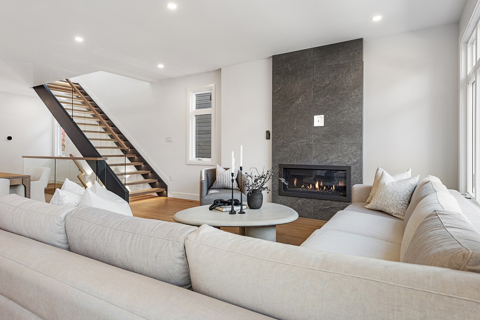 Welcome to 493 Highcroft Avenue, a brand-new, never-lived-in-before detached home located in the heart of Westboro. This elegant residence has premium finishes, a heated driveway, a rough-in for an EV charger, and high-efficiency systems. This home offers an unparalleled lifestyle surrounded by top-rated schools, parks, local cafes, & boutique shopping. Step inside through the bright entryway with heated floors to the airy main level, where wide-plank hardwood flooring flows seamlessly throughout the living space, complemented by 9-foot ceilings. The welcoming foyer features heated floors & a convenient powder room. A stunning floor-to-ceiling charcoal tile gas fireplace & luxurious floating staircase anchors the living room, along with expansive picture windows which frame the landscaped backyard, creating a perfect backdrop for everyday living and entertaining. The gourmet kitchen is a chef’s dream, boasting flat-panel cabinetry, sleek, premium stainless steel appliances, and an island with a built-in sink and dishwasher. Upstairs, the primary suite offers treetop views, heated floors, and an en suite featuring a double vanity with vessel sinks, a glass shower, and a soaker tub. Three additional bedrooms with oversized windows and a second full bathroom with a floating vanity and glass-enclosed tub and shower provide comfort and convenience for family living. A dedicated laundry room on this level adds practical ease to daily routines. The fully finished lower level, with heated floors, extends the home’s living space and features a bright room with recessed lighting and deep windows. A versatile bedroom, a three-piece bathroom with a frameless glass shower, and a storage area complete this level. This brand-new, never-lived-in home is move-in ready, offering a rare opportunity to own a stunning residence in one of Ottawa’s most desirable communities.