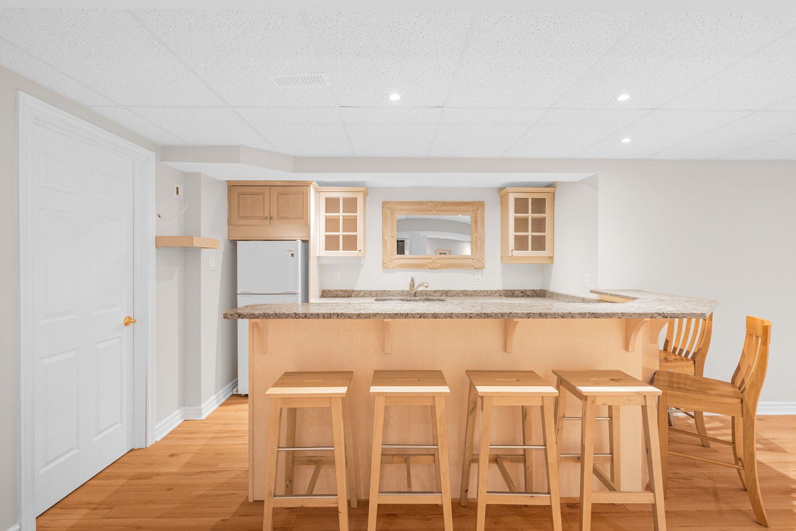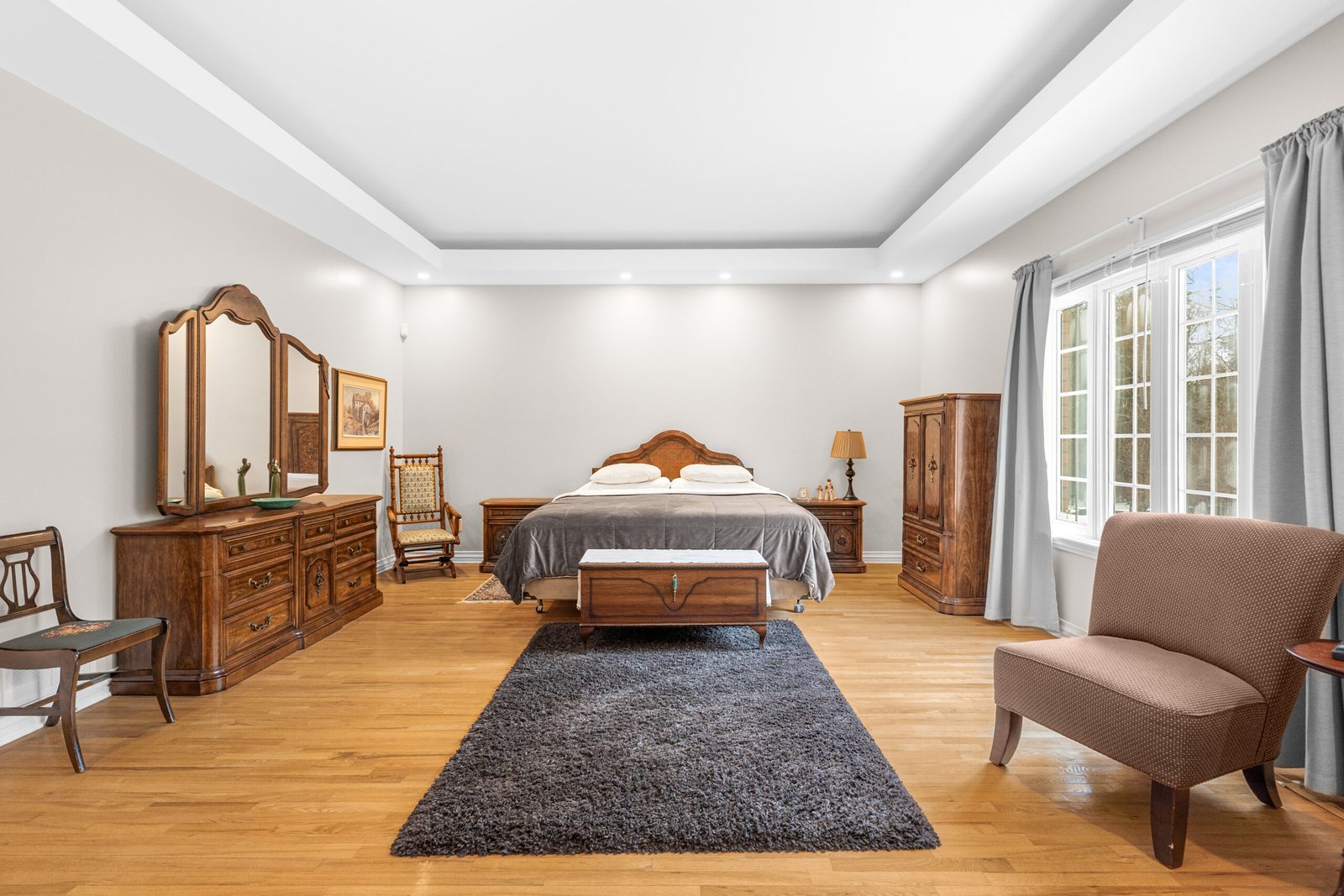 The primary suite is a true retreat, featuring dual walk-in closets and a five-piece ensuite with a soaker tub and glass-enclosed shower. Two additional main-floor bedrooms provide excellent flexibility, connected by a practical Jack-and-Jill bathroom. The finished lower level expands the home’s potential with a massive open-concept layout, a high-end wet bar, a full bath, and a second laundry area-ideal for a multi-generational suite, home gym, or media hub.